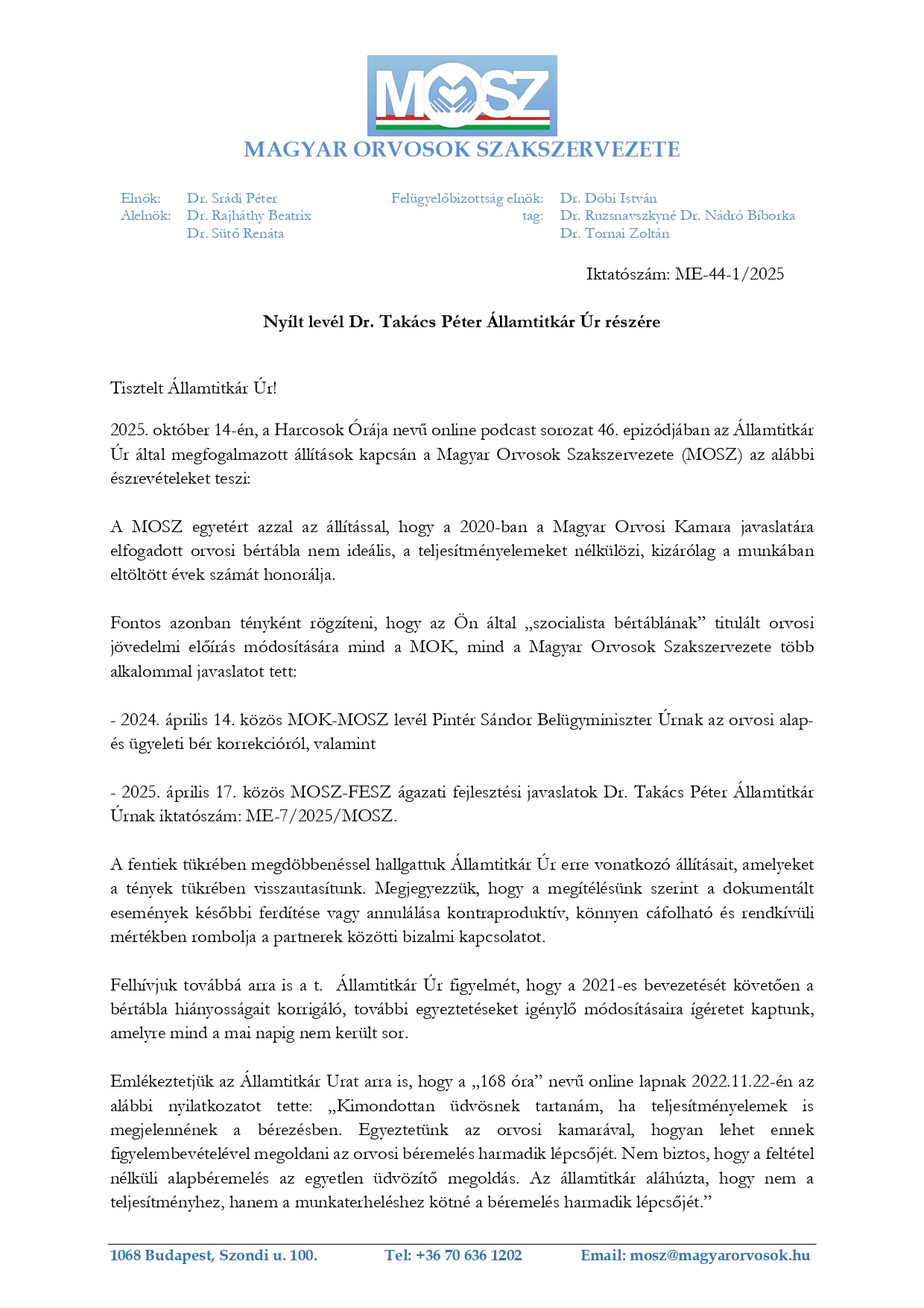 2025. október 16. (csütörtök) 13:14Magyar Orvosok Szakszervezete