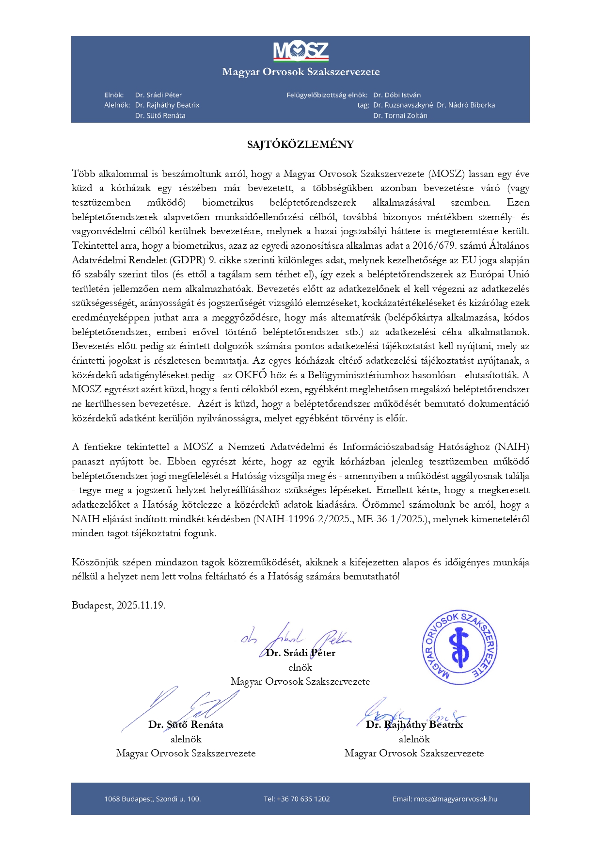 2025. november 19. (szerda) 07:43Magyar Orvosok Szakszervezete